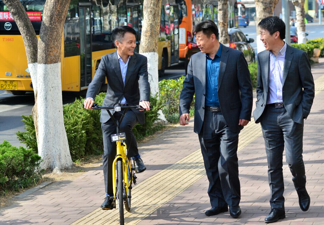 2017年4月14日8時30分左右,市政協委員馬英堯騎著一輛“小黃車”來到黃海飯店,輕盈的身影引來不少人關注,尹寶昌、薛月海兩名委員步走上前,為自己的老朋友這一新潮又環的舉動點贊。 “早就聽說共享單車了,資源共享,環又節能。 ”市政協委員尹寶昌說,自己接下來也要嘗試一下。
