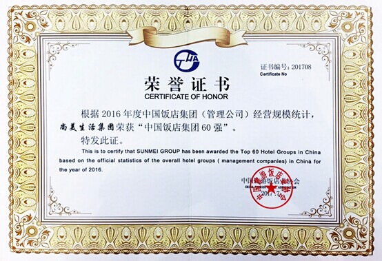 尚美生活集團蟬聯“中國飯店集團60強” 排名再升顯強實力