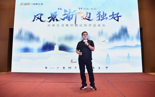 杭州投資品鑒會現場,青島尚美數智科技集團有限公司江浙滬特區總經理鄔夢濤先生作為開場嘉賓率先發言,他從“旅游、商旅市場環境”、“連鎖酒店投資優勢”到“集團旗下各明星品牌特色”等逐層剝析,基于行業權威數據,為嘉賓們分享了新一輪酒店投資發展趨勢與創新方向。