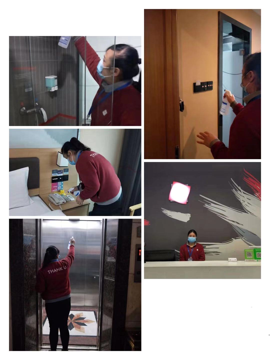 “我們加大了對客房、公共區(qū)域及員工區(qū)域等人流密集區(qū)域清潔消毒力度,公共區(qū)域每天兩次消毒,客房每日一次,同時保證足夠的通風(fēng)量,增加了對衛(wèi)生間、門把手、電話、電梯等高頻觸碰區(qū)域、空調(diào)系統(tǒng)濾網(wǎng)和管道的消毒頻率;在酒店公區(qū)提供應(yīng)急醫(yī)務(wù)藥箱、電子體溫計、一次性口罩及消毒洗手液等。同時我們酒店人員也做好消毒和防護,崗前做好更衣、洗手、消毒。每日佩戴口罩上崗,上崗前定時進行體溫測量,監(jiān)測結(jié)果記錄在案并及時上報。”