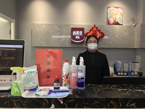 為了保證每位客人的安全,李婷堅持每天早上8點之前對酒店全域消毒,全天4小時一次全面消毒,加強客房通風,確保所有客用品都是一客一換。酒店前臺配備醫療服務箱,如有客人使用,用酒精消毒棉片擦拭消毒后再放回藥箱;此外,李婷還緊急采購一次性口罩,在防疫物資短缺的情況下,始終堅持免費為住客提供口罩,讓客人進入酒店就能感受到安心、放心。