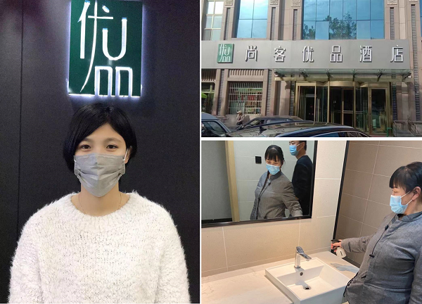 從大年三十到今天為止,高學(xué)始終堅守“陣地”,在收到接待任務(wù)之前,酒店休業(yè)了兩天,但她仍堅持不休息,既當(dāng)清潔工、服務(wù)員、又當(dāng)消毒員,身兼數(shù)職,確保衛(wèi)生安全,甚至向集團(tuán)主動申請去疫情最嚴(yán)重的武漢支援。