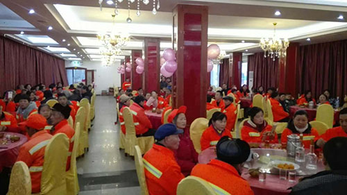江西省宜春市在2015年遭遇了“世紀寒潮”的冬天。當人們選擇躲在溫暖的室內時,環衛工人們卻仍然頂著凜冽的寒風堅守崗位。年關將至,宜春又將迎來一輪惡劣的雨雪天氣,他們為了群眾的出行方便,堅持奮斗在線。2月2日晚上,為了表示對環衛工人們的關愛與敬意,尚客優酒店銅鼓街心花園店三位老總胡爾鳳、黃偉、曾雪平邀請全縣一百三十多位環衛工人們相聚在一起,提前吃了個“年夜飯”。這是尚客優銅鼓街心花園店連續兩年請環衛工人吃“年夜飯”了。